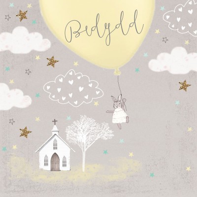 A gorgeous christening day greetings card with a sweet gold church with a pretty green and gold border. A wonderful way to pass on your best wishes on someone's christening day.