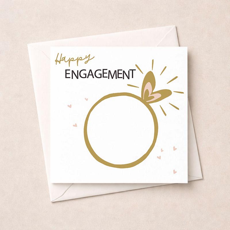 Happy engagement you beautiful pair! This Gorgeous engagement card is a fabulous choice to send to the happy couple, it has a big gold ring with hearts on.