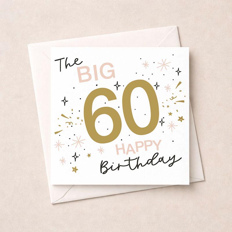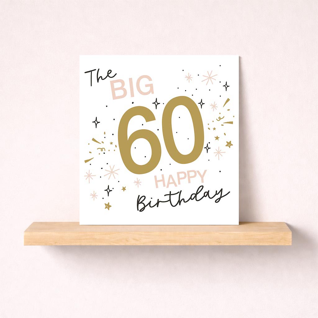Wish someone a happy happy 60th with this lovely 60th birthday card which has lots of confetti and stars. Here is to the big 60!