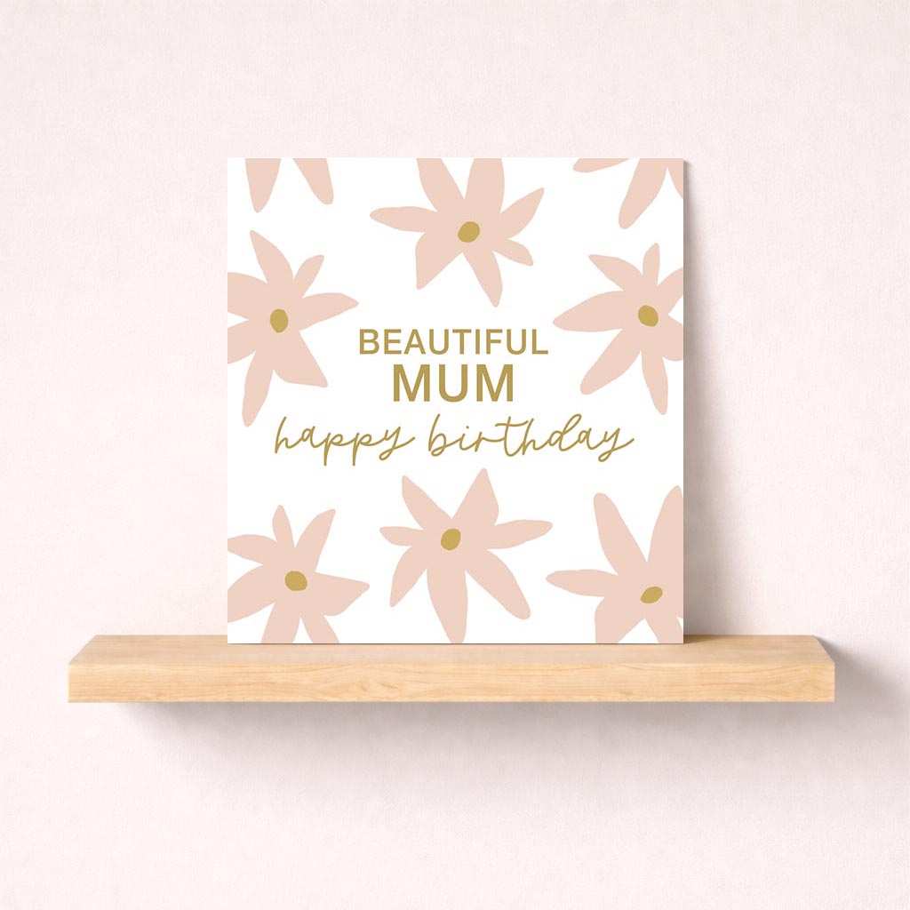 Wish your beautiful mum a happy happy birthday with this pretty birthday card. It has some gorgeous pastel pink flowers with gold details.