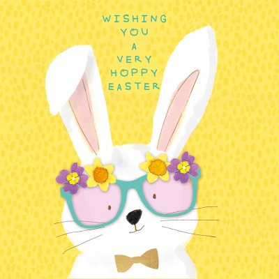 With a cheerful message that reads, "Sending happy hoppy love to you this Easter," the card encapsulates the spirit of Easter with a whimsical twist.