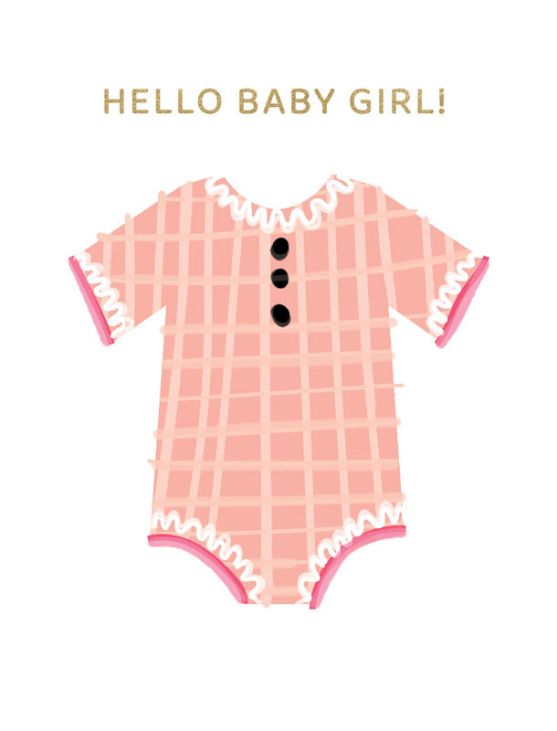 Celebrate the arrival of a beautiful baby girl with this sweet and elegant greeting card. Featuring a pink baby grow and gold foil lettering that reads "Hello Baby Girl," it’s the perfect way to share your joy and warm wishes for the new little one.