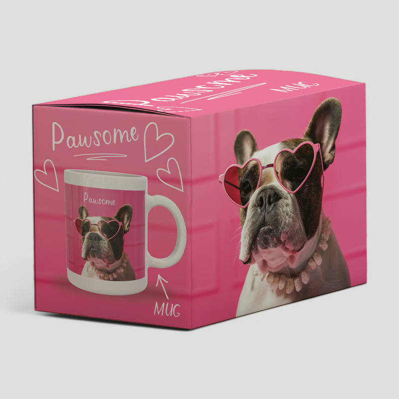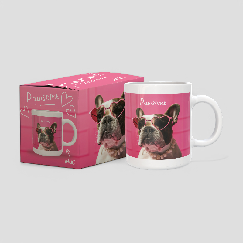 Add some flair to your day with our Pawsome Mug! This stylish design features a gorgeous French Bulldog, rocking pink heart sunglasses against a soft pink background. With the fun and confident phrase 'Pawsome'�, this mug is perfect for dog lovers, fashion fans, or anyone who knows they're truly pawsome.