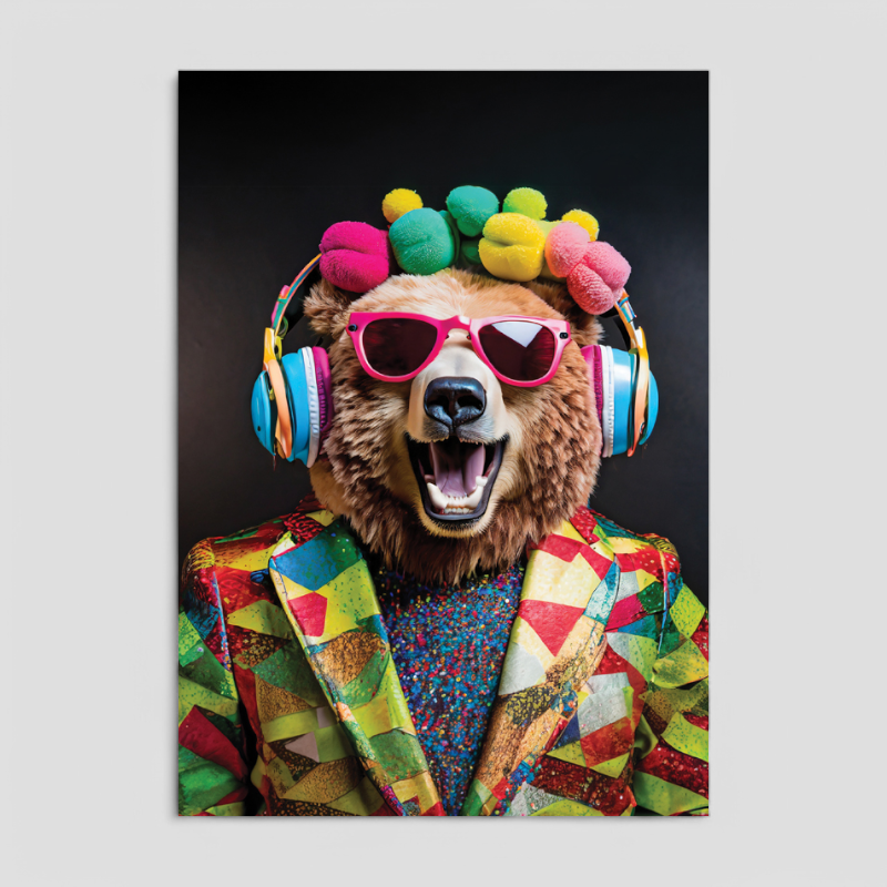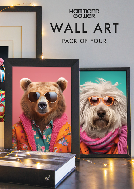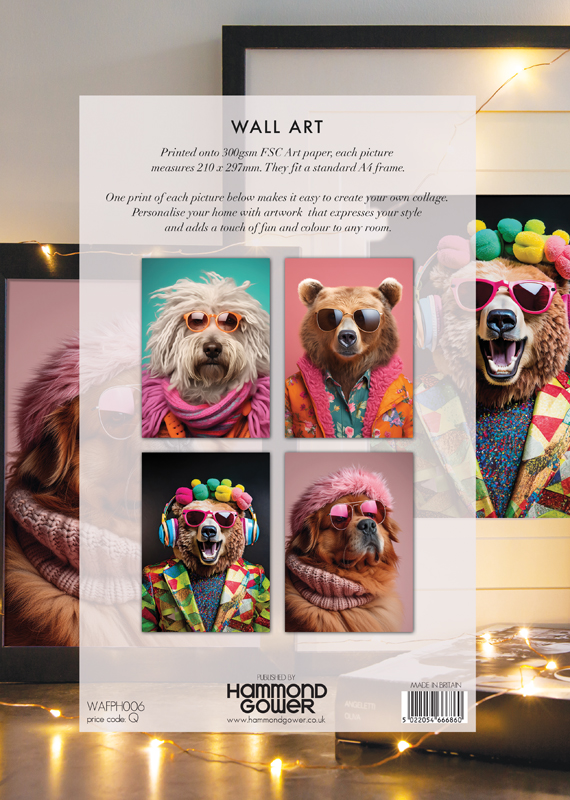 Add a fun and stylish touch to your home with this Set of 4 Wall Art Pieces, featuring an eclectic mix of cool dogs and funky bears! Printed on 300gsm FSC-certified art paper, these high-quality prints are both eco-friendly and bursting with personality. Each pack includes four unique designs that showcase these adorable animals in their most fashionable moments: