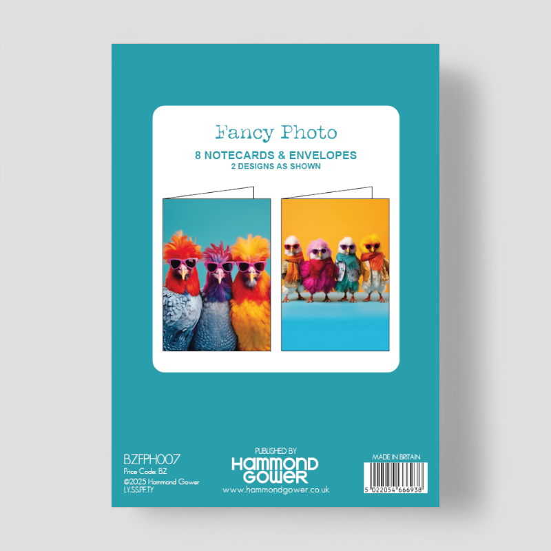 Add a pop of fun to your stationery collection with this vibrant set of 8 notecards, featuring two quirky chicken designs. Each pack includes four of each design, perfectly sized at 6” x 4”.