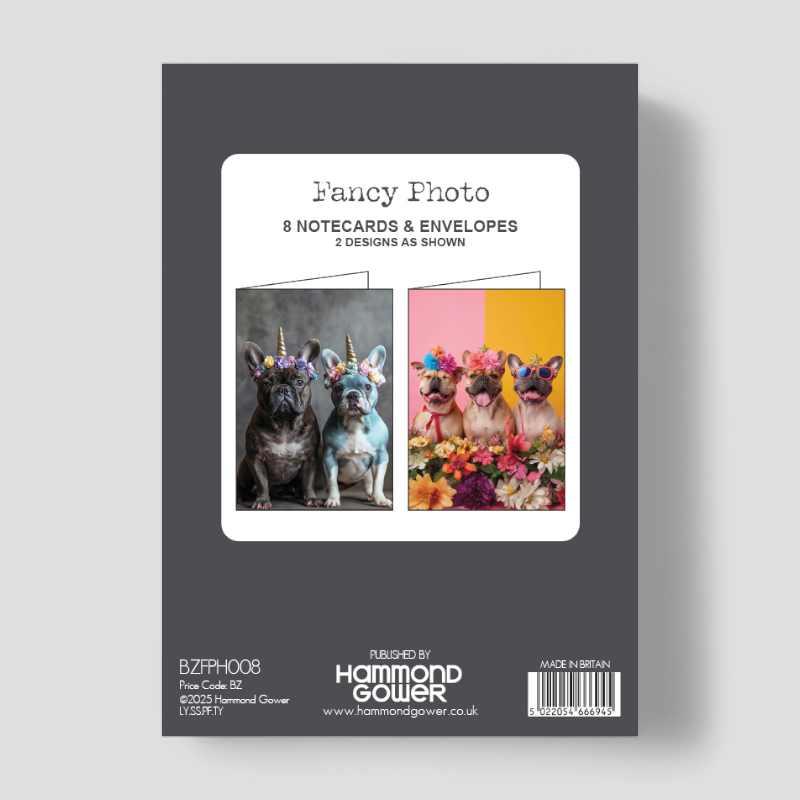 Add a touch of charm and whimsy to your stationery collection with this delightful set of 8 notecards, featuring two beautifully illustrated French Bulldog designs. Each pack includes four of each design, perfectly sized at 6” x 4”.