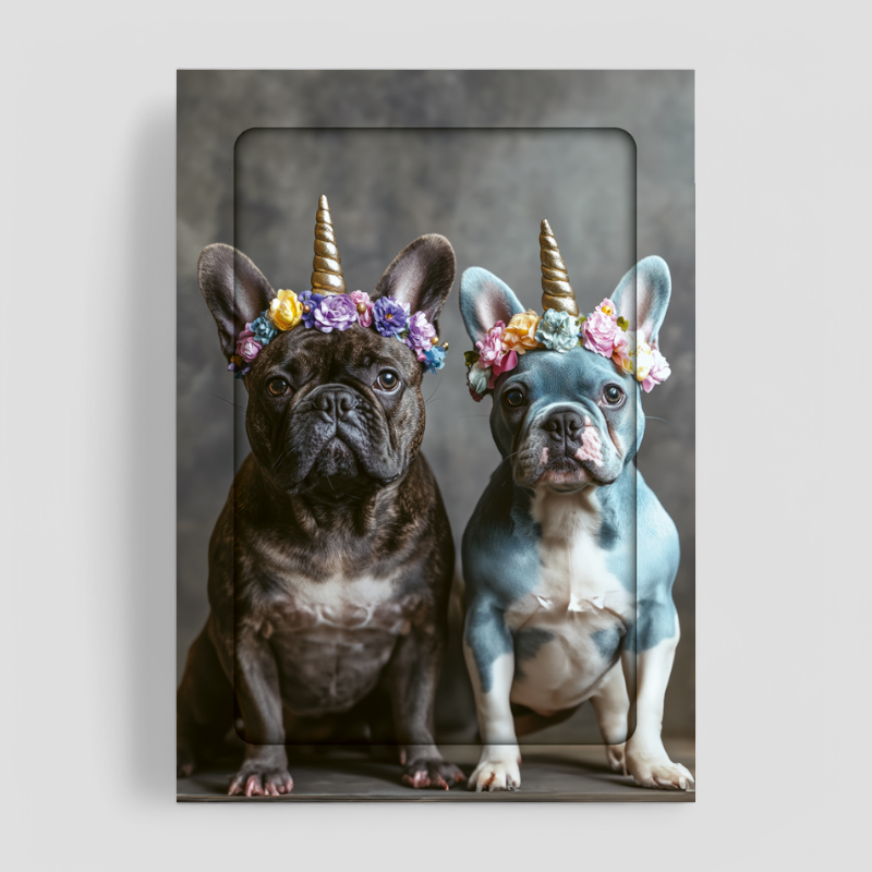 One design showcases two adorable French Bulldogs, both wearing floral unicorn headbands, bringing a magical and playful feel to your notes. The second design features three stylish Frenchies, surrounded by vibrant flowers, with some sporting sunglasses and floral crowns, making for an irresistibly cute and fashionable look.