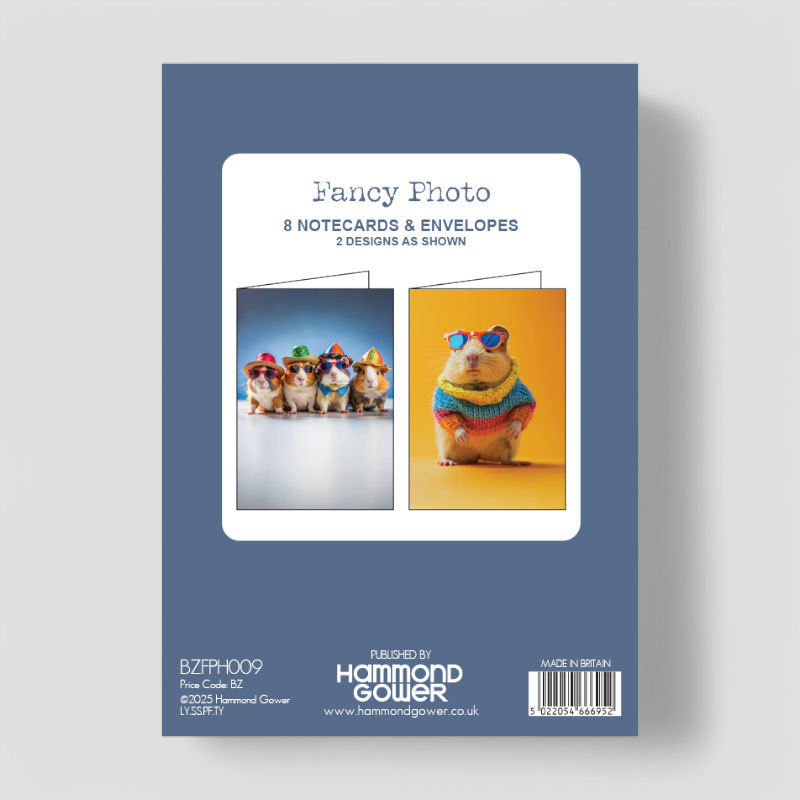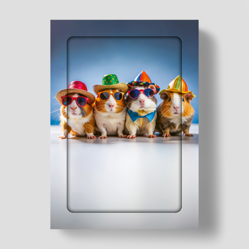 One design showcases a cute hamster, dressed in a cosy woolly jumper and stylish sunglasses, ready to bring warmth to any message. The second design features four trendy guinea pigs, each sporting fun summer hats and cool sunglasses, radiating charm and personality.