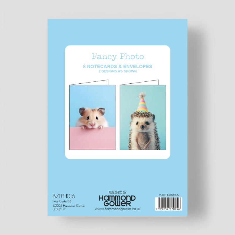 One design showcases an adorable hedgehog, sporting a pastel-striped party hat, ready to celebrate any occasion. The second design features a sweet little hamster, full of charm and character, making every note extra special.