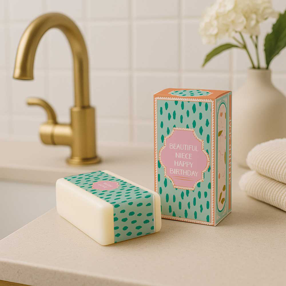 Make your beautiful niece’s birthday extra special with this charming soap bar. Infused with the healing properties of aloe vera and the cooling freshness of cucumber, it cleanses, hydrates, and pampers the skin with every use. The luxurious lather and delicate fragrance provide a moment of indulgence, while the vibrant, playful packaging adds a joyful touch. Whether given alone or as part of a pampering gift set, this soap is a lovely way to show your niece how much she means to you on her birthday.