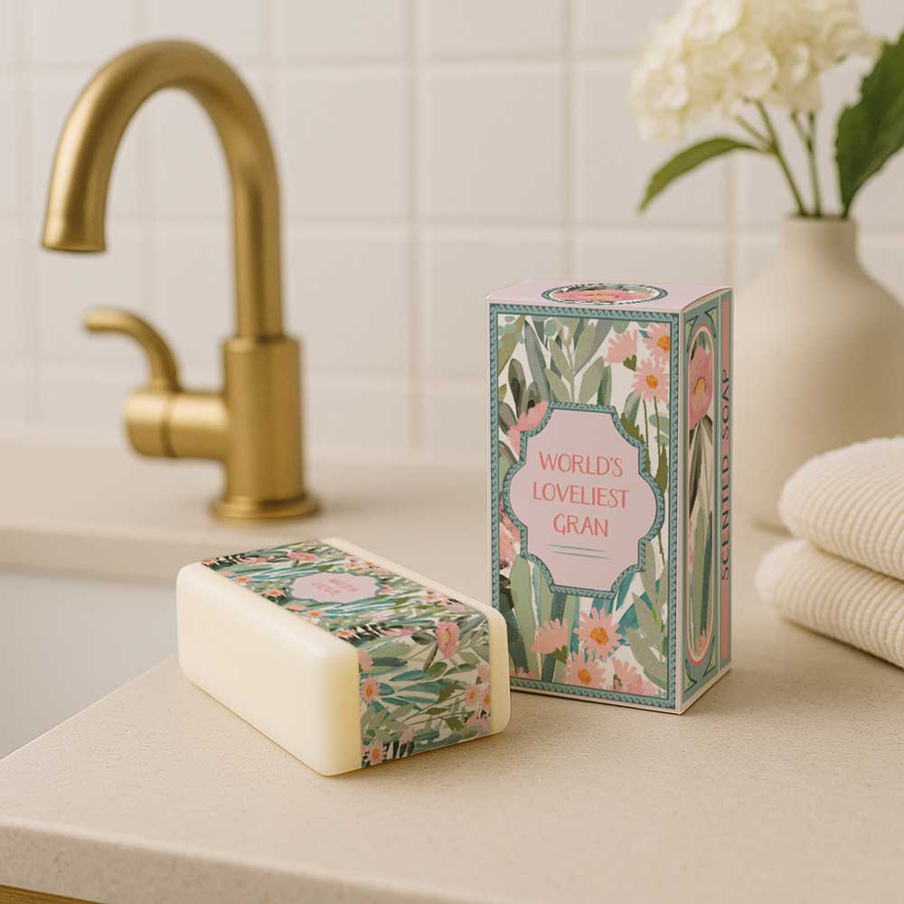 Show a beloved gran how much she means with this gentle vegetable-based soap. Enriched with aloe vera and cucumber, it leaves the skin feeling soft, smooth and lightly fragranced. The beautifully illustrated box features a delicate floral and foliage design, with “World’s Loveliest Gran” proudly displayed on the front — a thoughtful little gift for any occasion.