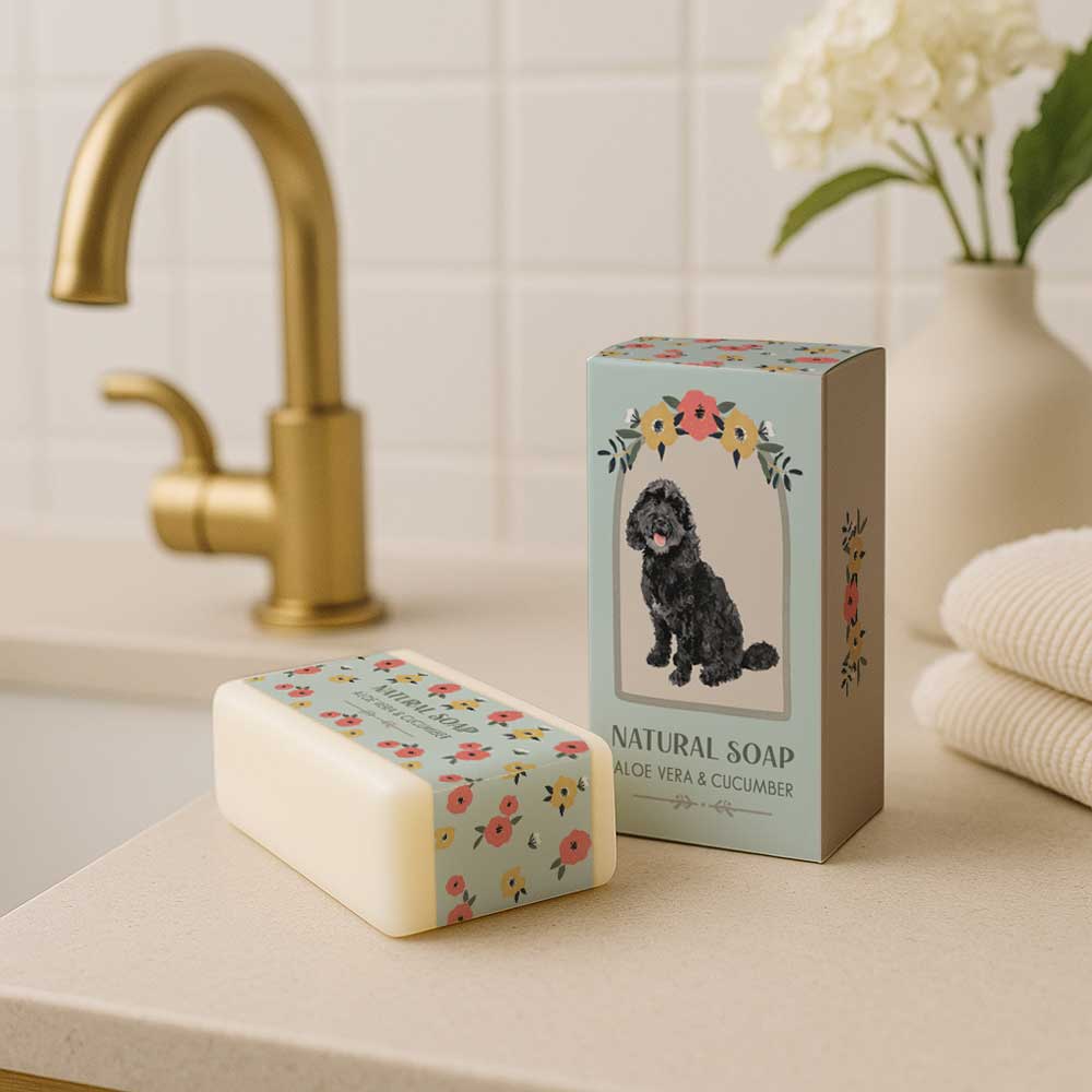 Brightly wrapped in cheerful florals and featuring a joyful cockapoo illustration, this nourishing soap offers a refreshing cleanse with every use. Infused with calming aloe vera and cool cucumber, it produces a rich, gentle lather that’s perfect for daily indulgence. A playful and thoughtful choice for cockapoo lovers or anyone with a soft spot for dogs and a taste for beautiful design.