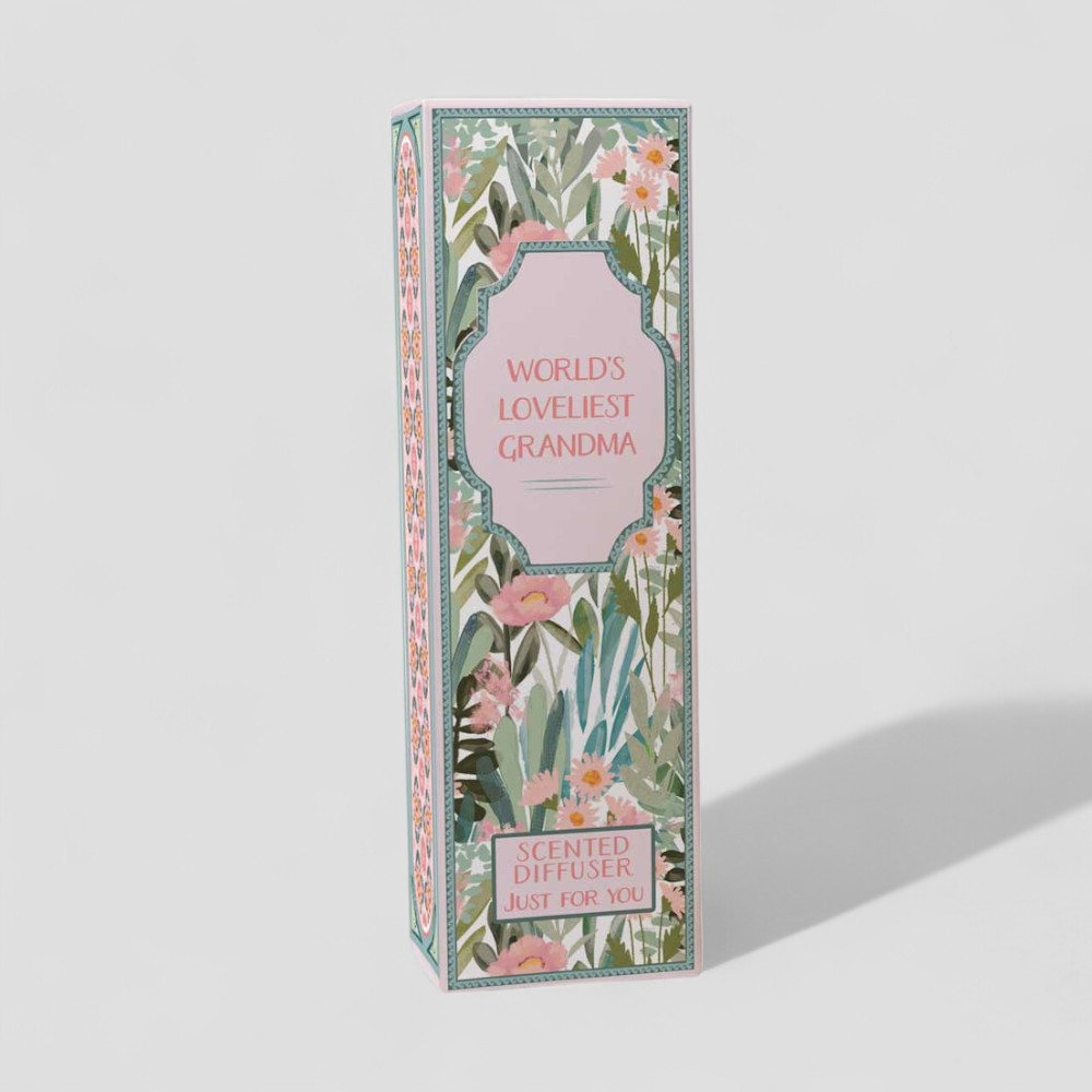 Celebrate the heart of the family with our World’s Loveliest Grandma reed diffuser, delicately fragranced with the refreshing scent of lime and basil. Housed in a beautifully illustrated box featuring a soft sage and blush floral design, this gift is as thoughtful as it is fragrant. The elegant pink and coral blooms contrasted with leafy greens create a timeless keepsake, perfect for birthdays, Mother’s Day, or just because.