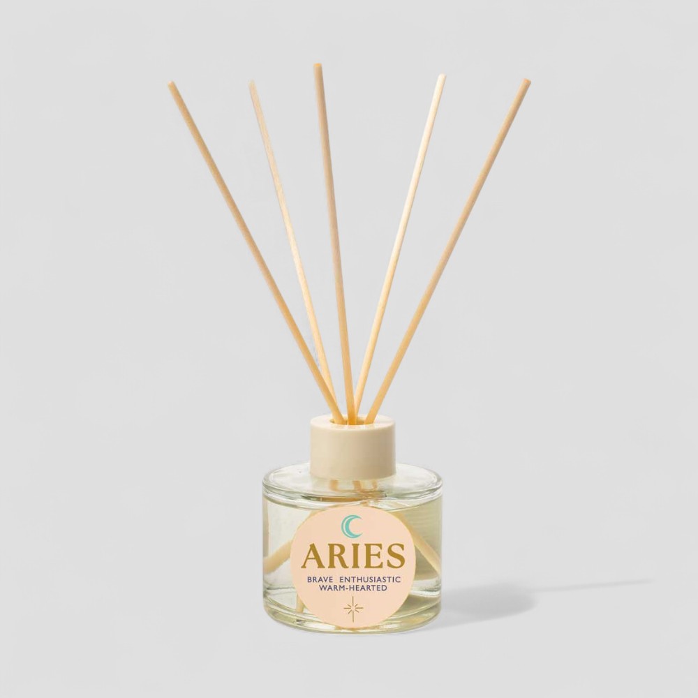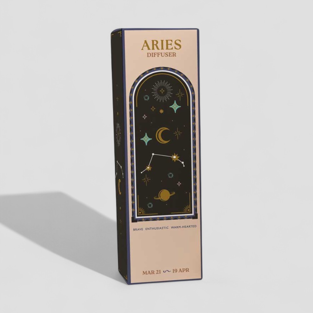 Presented in an elegant 100ml glass bottle, this diffuser provides a continuous, subtle fragrance, perfect for any room in the home. It comes in a luxurious gift box, featuring a stunning Aries horoscope design, making it a thoughtful and personalised gift for those born under this bold and passionate zodiac sign.