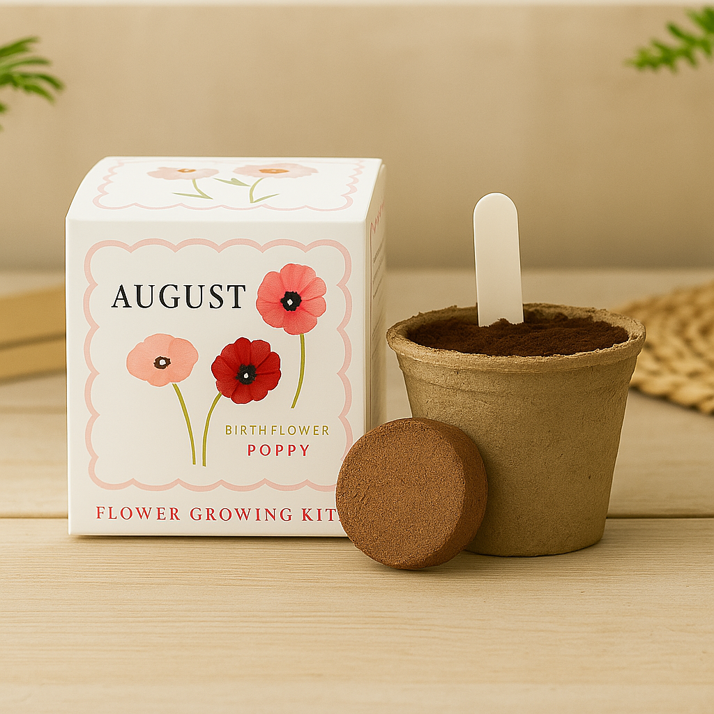 Honour August birthdays with the striking poppy. This thoughtful seed gift set includes poppy seeds, a pot, a plant label, and a nutrient-rich compost disc, all elegantly packaged in a floral gift box. Symbolising remembrance and peace, poppies make a wonderful and meaningful gift that continues to grow long after the birthday celebrations.